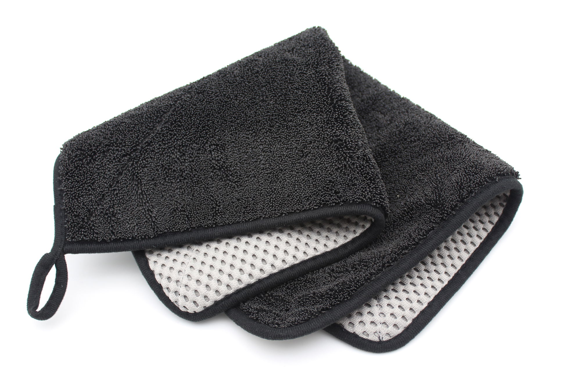 Aesthetic Appeal: Sleek, professional black microfiber exudes quality.Dual-Function Design: Versatile surfaces for different cleaning needs, reducing tool clutter.